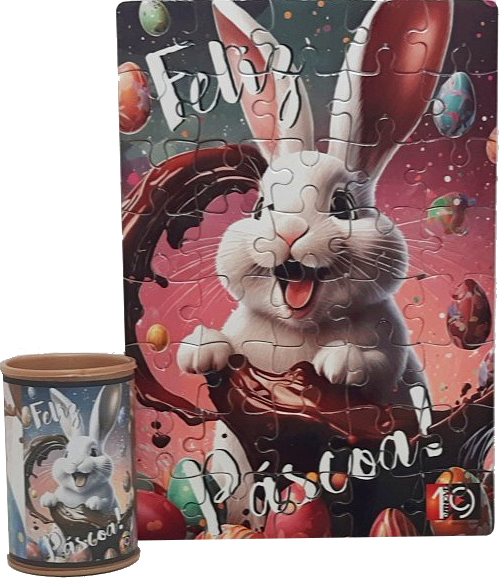 Quebra-cabeça de Páscoa, estampa coelhinho, papelão, 40 peças.