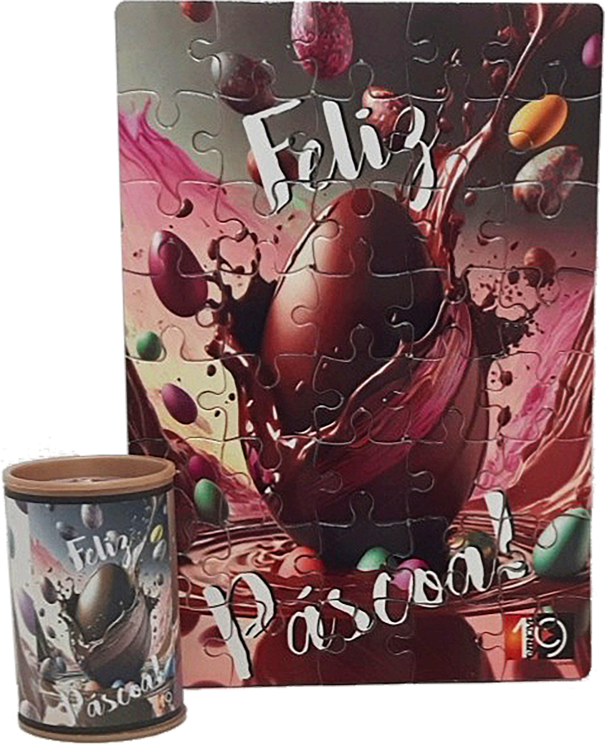 Quebra-cabeça de Páscoa, estampa ovo de chocolate, papelão, 40 peças.
